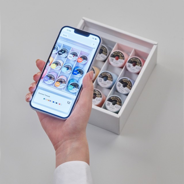 Settet leveres med Artspira AR-funksjon – hver tråd har en egen strekkode på etiketten. Med Artspira kan du enkelt skanne trådene dine og bygge ditt eget digitale trådbibliotek. Dette gjør det enklere å velge riktige farger og tilpasse designene dine etter trådene du har tilgjengelig.