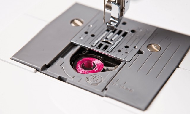 Bare træ maskinen fra toppmatingsspolen, velg ønsket søm med frontvelgeren, og juster lengde og bredde etter behov – så er du klar til å sy.